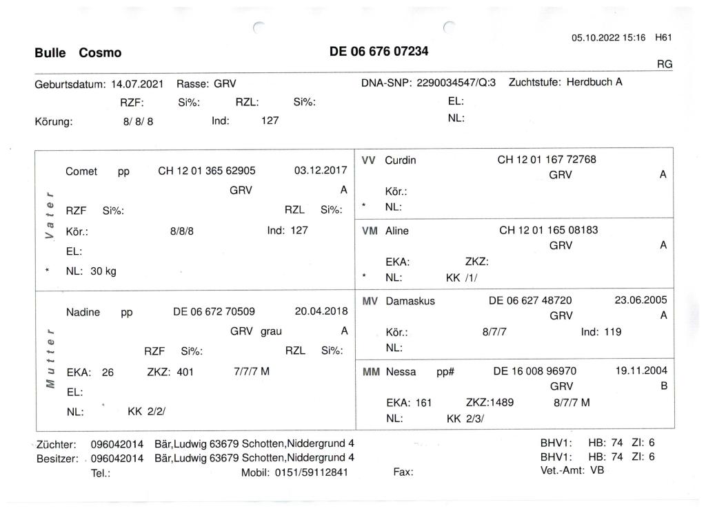 | Bulle | Klaus | Herdbuch | A | Benotung | 7/7/6 |